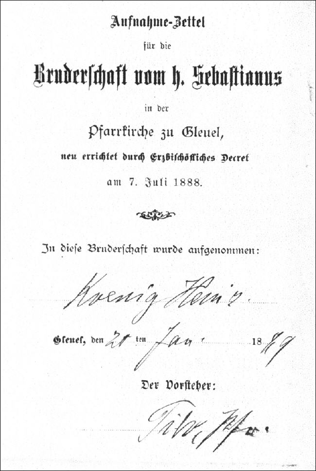 Original Aufnahmeantrag von 1888 damals noch "Bruderschaft vom hl. Sebastianus"